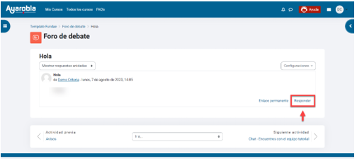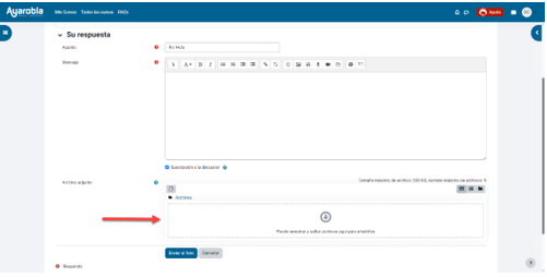 Si queremos realizar una aportación, podemos pulsar sobre el botón Responder del mensaje que deseemos contestar, escribir un mensaje dentro del apartado Cuerpo del mensaje, y hacer clic en Enviar al foro. Tenemos una barra de formato para usar negritas, cursivas, etc.