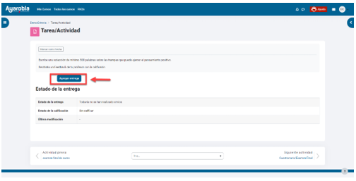 Para leer la tarea, solo tienes que hacer clic sobre su título. Después, deberás seguir las instrucciones que te plantea. A veces, debes realizarla en tu ordenador y adjuntar el archivo y otras veces rellenarla directamente en la pantalla.